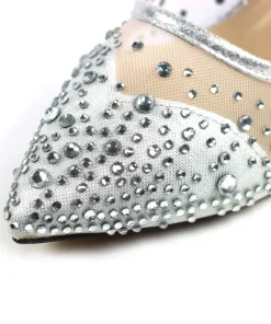 These womens stilettos are perfect for glitter season. Finished in a silver mesh upper with diamantes. Closed toe and heel. Matching bag available.