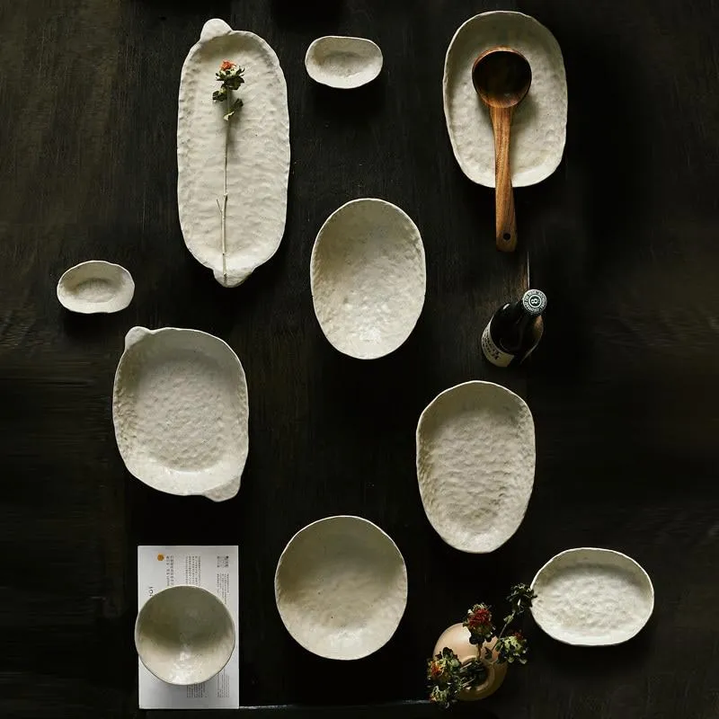 - Stone textured plates and bowls