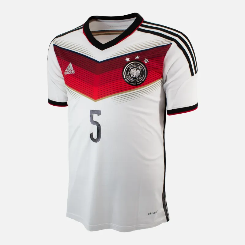 Mats Hummels personally signed home Germany football shirt, from the tournament Germany became world champions for the 4th time. 2014 Fifa World Cup kit, Hummels played the full game keeping a clean sheet as Mario Gotze scored scored the winner in extra time.