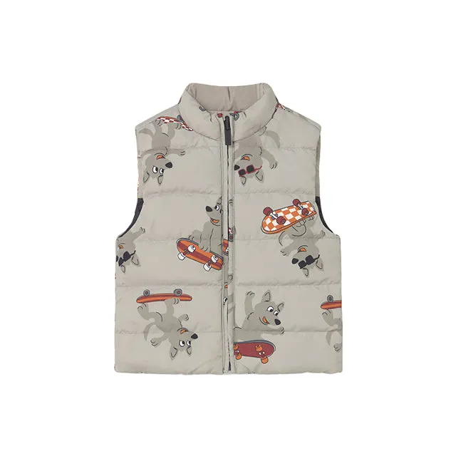 This reversible bodywarmer is a versatile must-have for active boys. One side features a sleek two-tone design, while the other bursts with playful skater dog prints. Lightweight yet warm, it’s perfect for layering on cooler days. With practical pockets and a zip closure, it’s as functional as it is stylish.