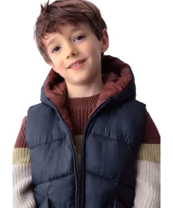 A colour-block gilet designed for warmth and style, this Mayoral boys’ piece is perfect for layering. The sleeveless design features a zip fastening and cosy hood, making it an easy choice for active days outdoors. The mix of earthy tones and navy trim give it a modern, sporty finish. Reversable, giving you the choice.