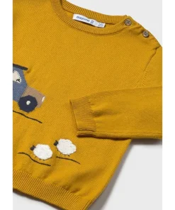 Mayoral Boys Jumper 2343 Ochre is a playful yet practical knit that’s perfect for little adventurers. Crafted in a warm ochre hue, it features a fun tractor and sheep design that adds character and charm. Soft to the touch and easy to wear, this jumper is a cosy choice for everyday outings, keeping him snug while looking effortlessly stylish.