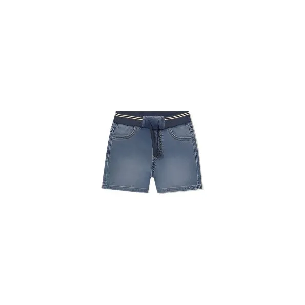 A cute pair of Bermuda style shorts for your little boy from Mayoral. With a broad elastic waistband, these are the perfect pair of shorts for all day comfort this Summer. In a medium blue denim with navy waistband with white stripe and navy drawstrings. Finished with pockets on the front and back.
