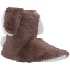 Infant children’s bootie slipper with easy touch fasten closure and character front.