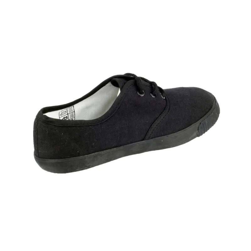 Great value children’s plimsoll with traditional canvas uppers and non-marking rubber outsole. Securely fitted with adjustable lace up front and cord lacing. The ideal school shoes for PE and indoor gym halls.