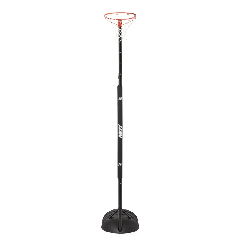 The NET1 Netball System’s 5cm diameter powder-coated, three-piece pole is covered by a NET1 pad to protect players. The tool-free telescopic adjuster can change the height, from 2.0m up to 2.6m (6’5” to 8’5”), in seconds.