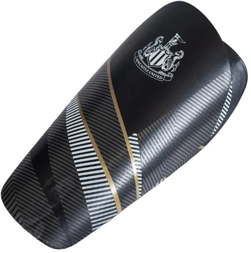 - Black fuse design slip in shin guards featuring the Newcastle United crest in white .