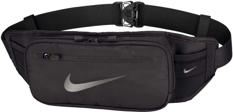 The Nike Hip Pack features a stabilized design which reduces bouncing as you run, secure zip pocket with internal divider expandable fabric stretches to fit larger items and reflective swoosh.