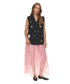 Make a statement with the Women’s Numph Nualmut Long Vest, a striking blend of tailoring and playful charm. This sleeveless double-breasted vest is adorned with whimsical embroidered motifs that bring a touch of artistry to its structured silhouette. The buttons and flap pockets add a refined edge, while the longer length offers a flattering, modern look. Layer it over a blouse, turtleneck or dress for a standout finish.