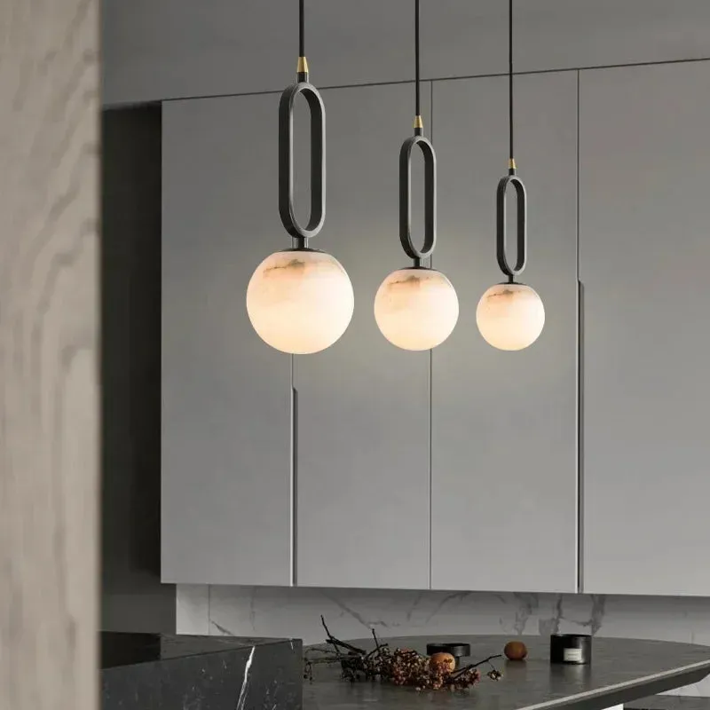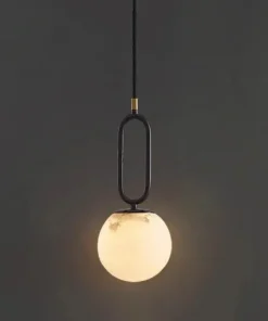Illuminate your space with the contemporary elegance of the Orbit Glow Marble & Brass Pendant Light. Featuring a striking black ring frame paired with a luminous spherical shade crafted from fine marble, this pendant light is both functional and artistic. The marble’s natural veining adds a touch of luxury, while the warm, diffused glow creates an inviting and serene ambiance.