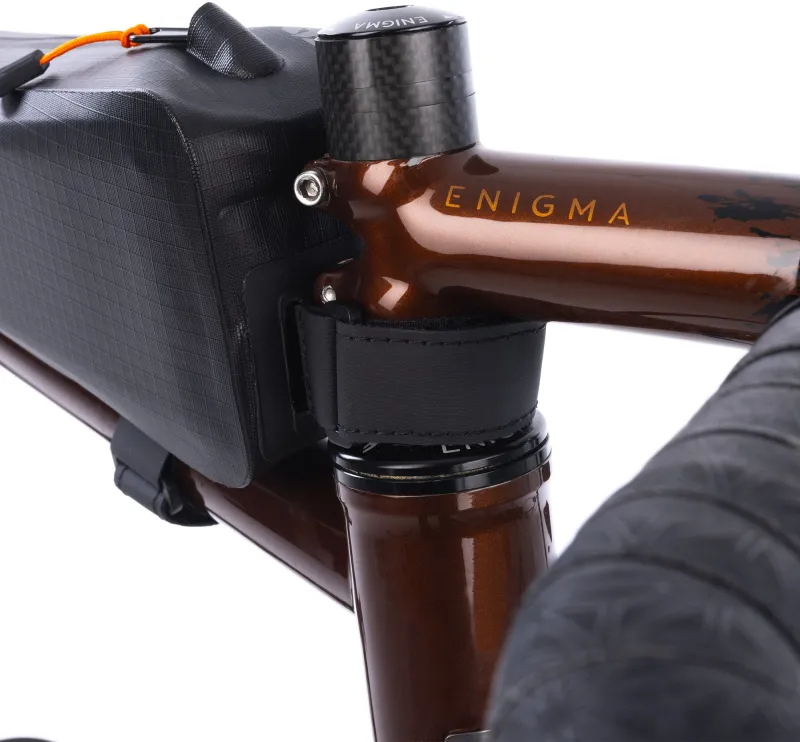 IPX6 waterproof construction significantly enhances the Top Tube Pack’s ability to withstand heavy rain and dirt impact. This means you can feel safe knowing your kit will remain dry when it‘s time to unpack at the end of the day.