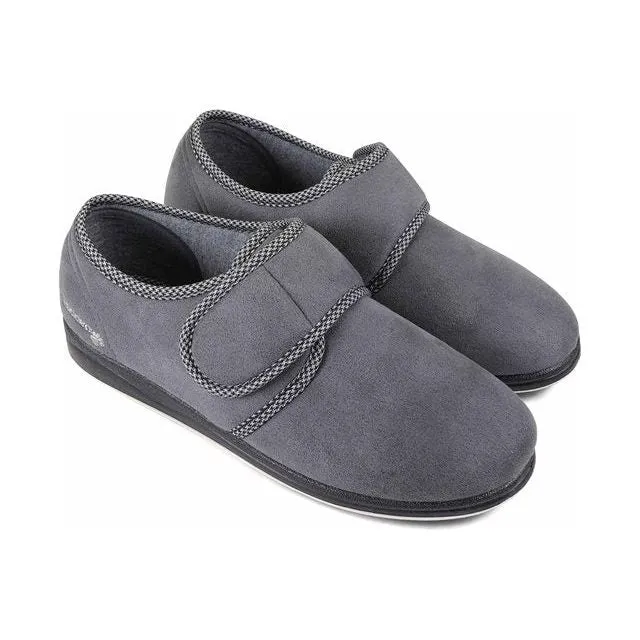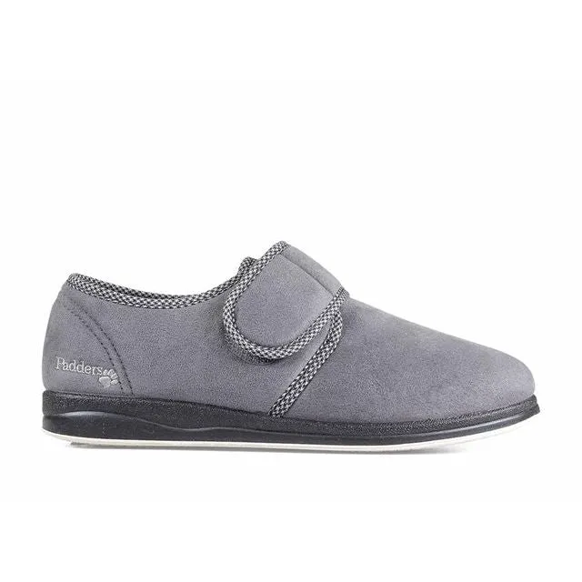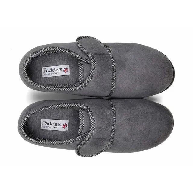 These comfortable Padders Slippers are just a mens must have! They are a wide fitting with a touch to fasten velcro strap on the upper. With a soft memory foam insole and a soft but firm hard wearing sole. Finished in a dark grey.