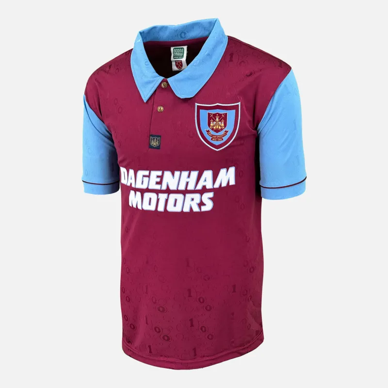 Paolo Di Canio personally signed West Ham United football shirt, Scoredraw reissue home kit from the 90’s. Joined The Hammers in 1999, Di Canio quickly became one of the club’s most iconic players, known for his technical brilliance, flair, and fiery passion. His unforgettable scissor-kick volley against Wimbledon in the 2000 FA Cup remains one of the greatest goals in the competition’s history, cementing his legacy as a West Ham legend.
