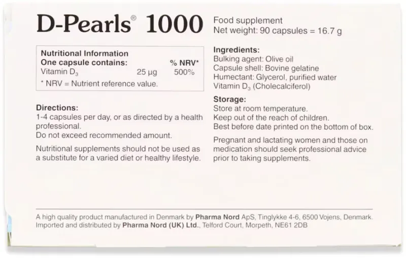 PHARMA NORD D-PEARLS 1000IU 25mcg 90 CAPSULES