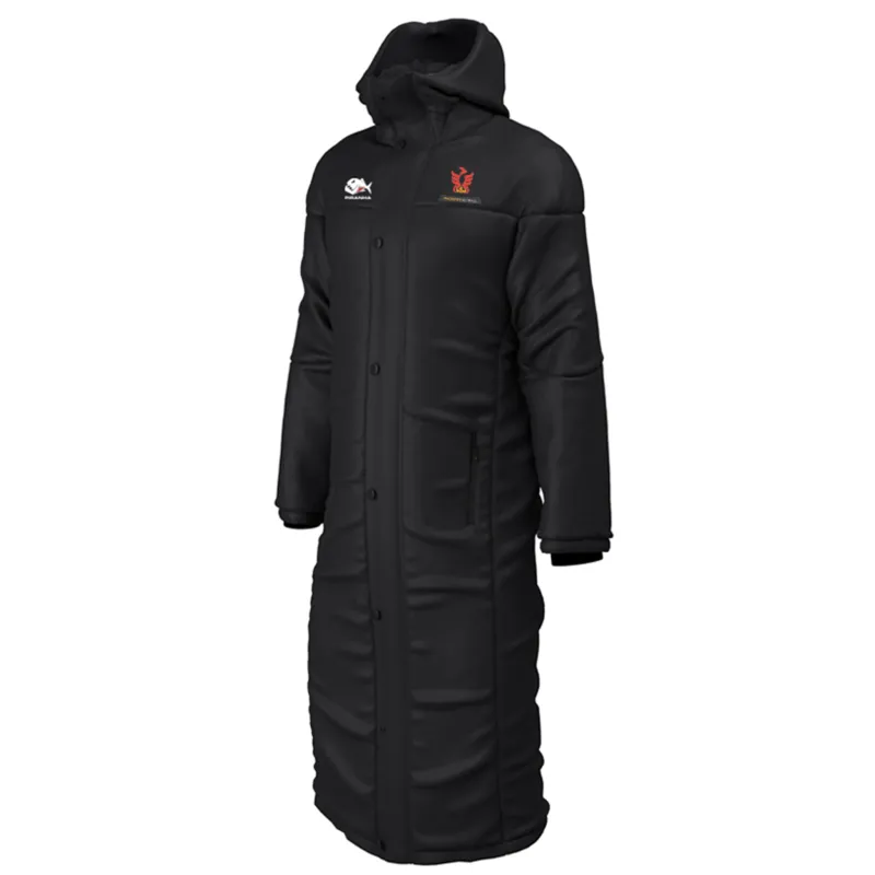 Long length coat with embroidered club logo. We recommend you come in store to try on this item before buying.