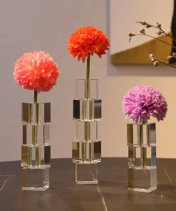 Crafted from high-quality crystal glass, the vase catches and reflects light beautifully—creating subtle glimmers that shift as you move around the room. Available in clear for a sleek, minimalist look or in colored blocks for a vibrant, playful vibe, it’s the perfect fusion of style and function. Choose from three sizes to fit everything from a single bold bloom to a full floral arrangement.