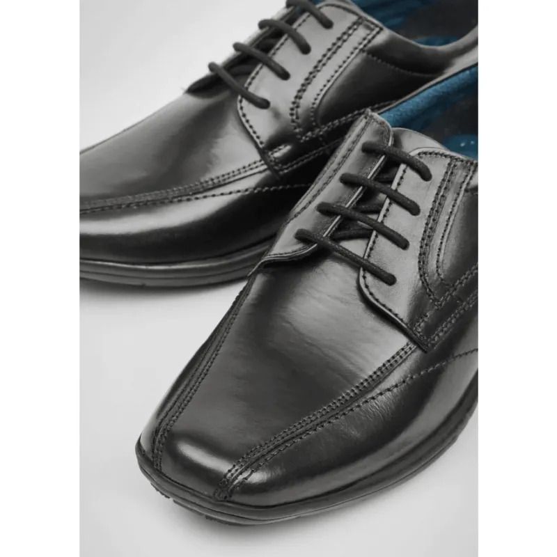Angus is a smart boys lace up shoe from POD in a black leather with streamlined toe perfect for any occasion. Work, school or occasion, the Anugs shoe has you covered. Textile lined for a comfortable fit with stitching details to the upper. An ideal school shoe.
