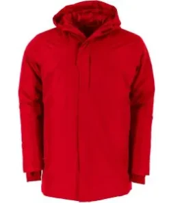 The Prime Padded Coach Jacket is made of 100% polyester with PVC coating and has an isolating inner lining. The jacket has a semi-long cut with a longer rounded back and features a storm cuff. This water- and wind-resistant jacket with taped seams has Stanno logos on the chest and back.