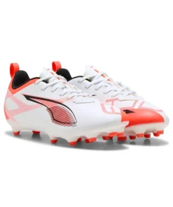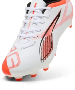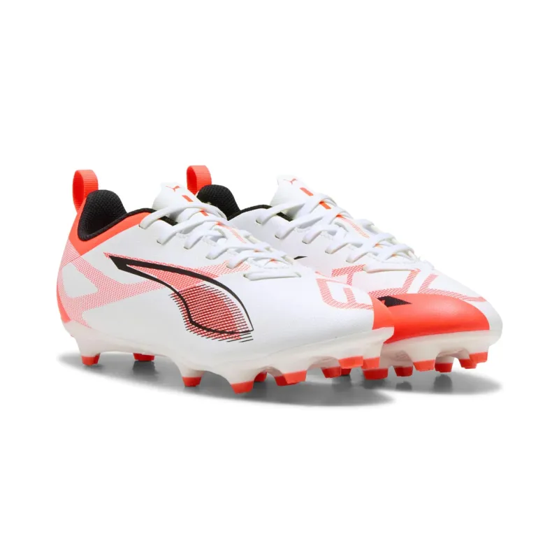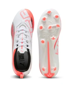 Puma Junior Unisex Football Boots Ultra 5 Play FG/AG White/Black/Glowing Red