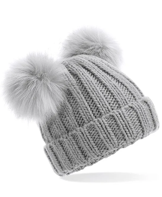 Grab your sledge, it’s time to play! For your mini-me and youngest winter wonderlanders, the infant/junior faux fur double pom pom beanie has been created to keep the little ones warm and comfortable when playing out in the snow. Created with fun at the forefront this sumptuous heavy ribbed knit provides extra warmth for any winter exploration.