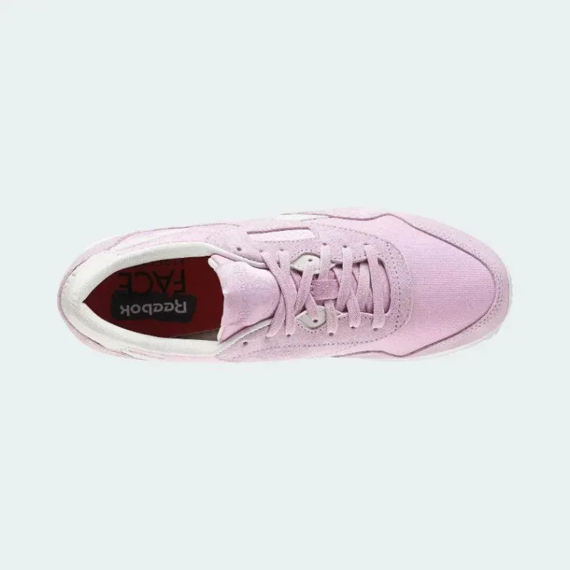 The Reebok Classic Nylon X Face BD2683 is a stylish and comfortable sneaker designed for everyday wear. It features a classic silhouette with a nylon and suede upper for a blend of durability and retro style. The low-cut design offers freedom of movement and a sleek look. An EVA midsole provides lightweight cushioning, while a high-abrasion rubber outsole ensures traction and durability. The shoe also includes padded foam sockliners for added comfort. This model combines classic design elements with modern comfort features, making it a versatile addition to any wardrobe.