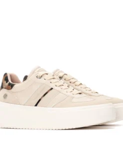 A beautiful platform trainer from Refresh that will be a much loved and often worn addition to your collection. The 172953 trainer boasts a synthetic and textile upper in cream and beige with animal panels adding interest to an already stunning trainer. The trainer sits on a white platform sole with a heel height of 50mm to elevate your look. Lace fastening for a personalised fit.