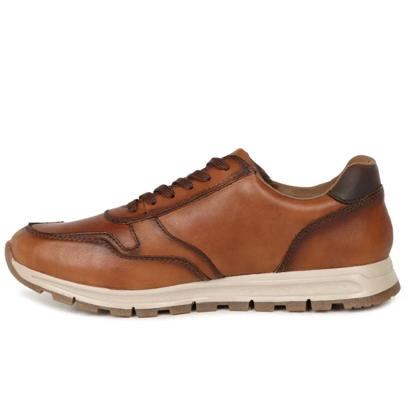This Casual mens fashion trainer from Rieker is a must have to any collection. In a high quality brown leather. Fastened with brown laces and a size zip. Complete with a removable insole and a comfortable padded collar and tongue.