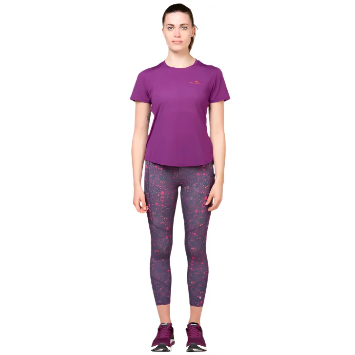 Ronhill Womens Tight Tech Crop Damson Raindrops