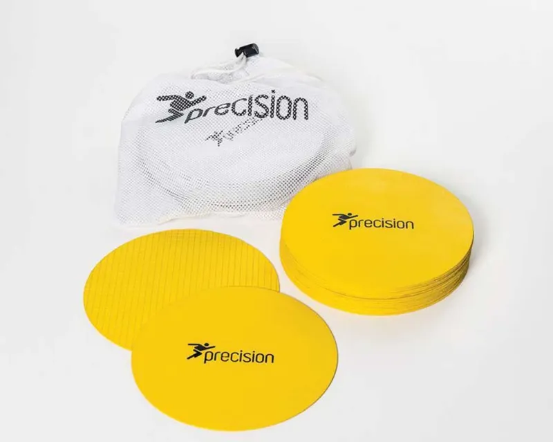 Set of 20 markers with non-slip backing grid. Includes carry bag. Colours: orange, yellow, white.
