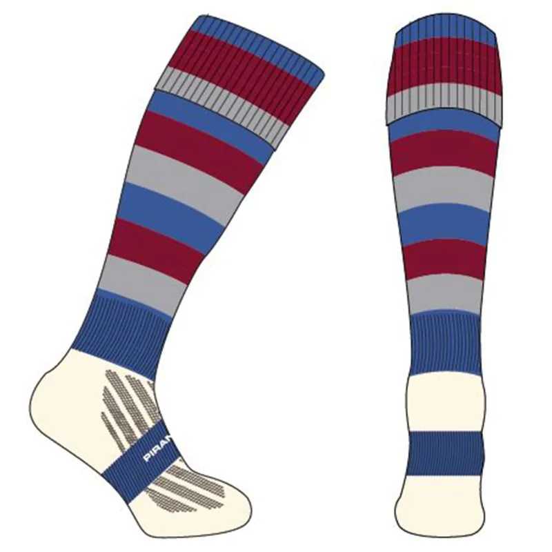 Royal, maroon and silver hooped games socks with cool max foot for extra comfort – compulsory item.