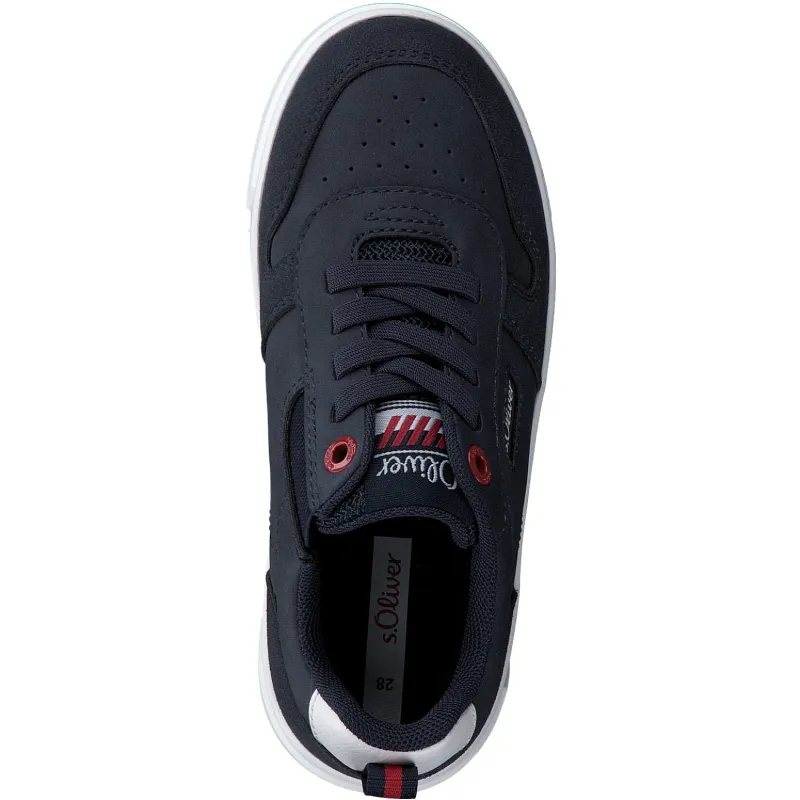 A classically styled boys sneaker from S.Oliver in rich navy synthetic leather uppers with panel detailing and perforations over the toes. A versatile shoe which can be styled with jeans, chinos, sweatpants or shorts. Complete with a white heel cap and sole unit with branding to the side and tongue. Fastened by laces and lined in textile with a padded collar and removable footbed.
