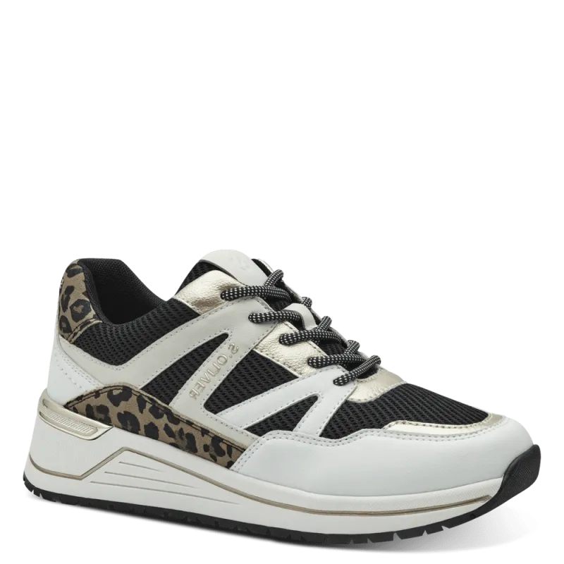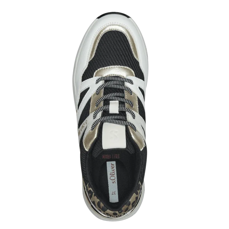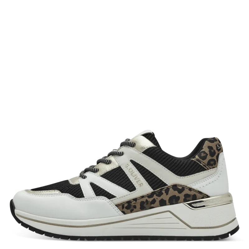 This new trainer from S.Oliver is just what you need, sporty yet stylish. Crafted in a combination of white, black, gold and leopard print. Fastened with laces and complete with a padded insole to ensure all day comfort.