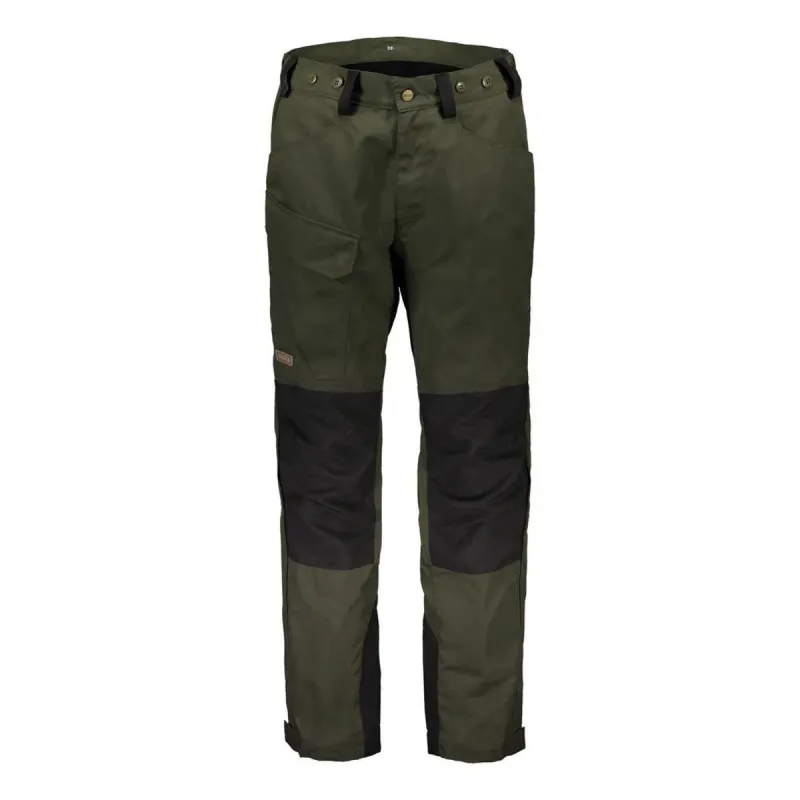 Jero is one of our most technical and hard-wearing trousers. The knees and inside legs are reinforced with extra-strong Kenytex material. The trousers include strategically placed stretch panels for added function. For storage the trousers feature a large thigh pocket with a zipper. Velcro fastening on the leg ends and behind the knee allow better adjustment. The trousers have buttons for braces.