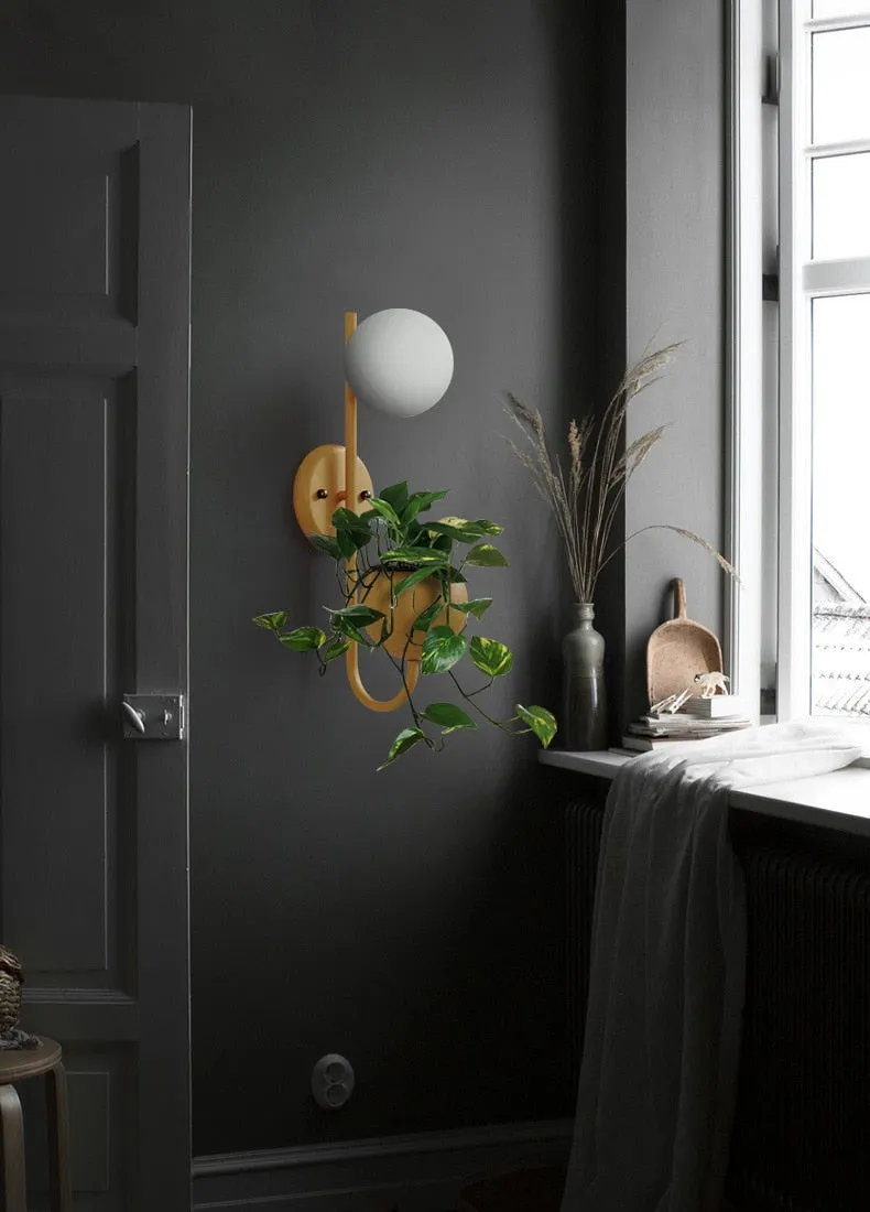 Create a warm atmosphere with the elegant and versatile Savoy Wall Lamp, Planter and Organizer. Available in 5 distinct colors, it’s made from iron and includes a frosted glass lampshade to disperse light and keep your plants beautifully illuminated. Great for patios, kitchens, or studios – this light fixture has endless purposes!