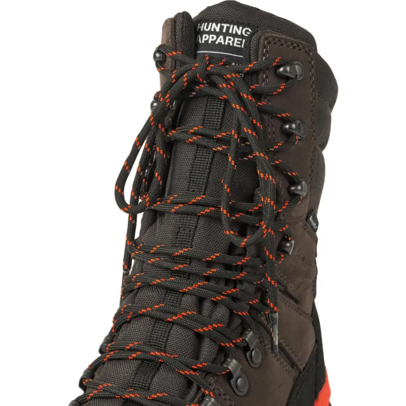 Whether you’re hunting moose, wild boar, or other types of game that live in tough terrain, the Enduro Tracker High boots are ready for the challenge. The Enduro Tracker High boots are the go-to boots for rocky and wet terrain. The extended height, ideal for crossing streams and boggy areas, will keep you dry and supported in rough conditions and hilly terrain. The boots provide lightweight comfort and dependable protection. Its European fit combined with medium torsion and firm heel support ensures stability. The EVA midsole and PU footbed offer shock absorption to minimize fatigue on rugged hunts. The PFAS-free Sympatex lining provides waterproofing, and the durable Nubuck leather with a reinforced mudguard withstands rough outdoor use. Equipped with a functional lacing system featuring speed laces, locking hooks and ski hooks, it’s easy to secure – even when you’re wearing gloves. The rugged rubber sole provides reliable grip and an orange stabilizer adds enhanced heel support.