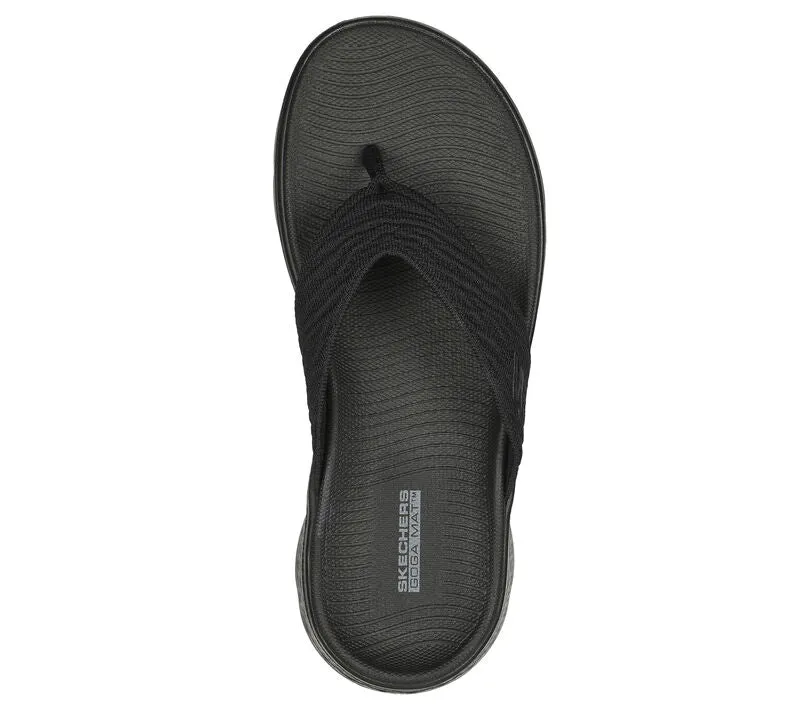 Stay ready for anything sand, sea or in between wearing Skechers GO WALK® Flex Sandal – Splendor. This 3-point thong style features an engineered knit upper with a contoured Goga Mat® footbed and lightweight ULTRA GO® cushioning.