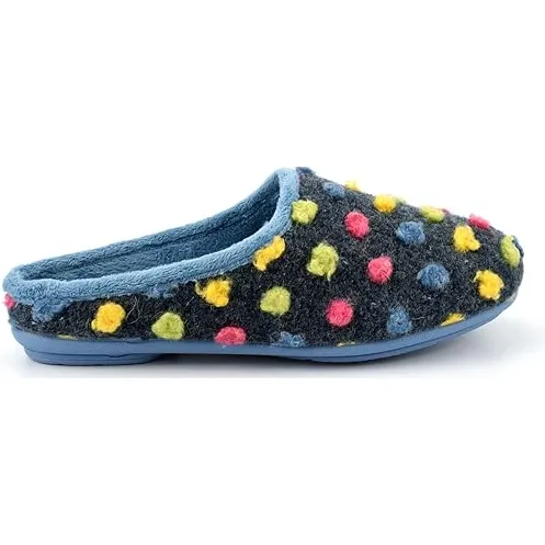 Bright, cosy and effortlessly comfortable, the Sleepers Amy slipper adds a fun pop of colour to your downtime. Featuring a playful multicoloured spot design against a soft blue trim, this easy slip-on style keeps your feet warm with its plush lining and gently cushioned feel. Lightweight and flexible, it’s the perfect slipper for everyday indoor comfort.