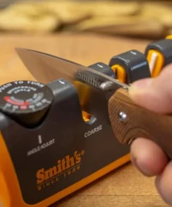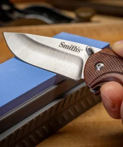 Smith’s EdgeSport 3″ folding knife features a satin finish 420 stainless steel blade. The handle is a rugged Glass-Filled Nylon material with a liner lock to secure the blade. The pocket clip positions the knifepoint down in the pocket. Also, includes a 2-Step sharpener.