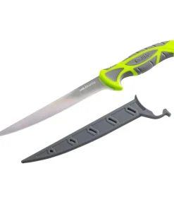Mr. Crappie’s 7″ Fillet knife has a non-slip TPE soft grip ergonomic handle and a breathable protective sheath. Features razor-sharp 400 series stainless steel blade.