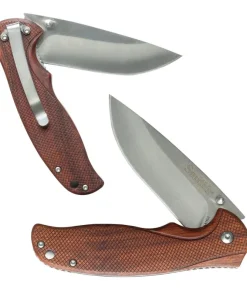 Smith’s ADAHA 3.43″ drop point blade features a rugged satin finish. The razor sharp blade is made of precision heat treated 400 series stainless steel with an ambidextrous thumb screw for easy opening. Equipped with rugged natural wood handles and sturdy liner lock design secures the blade open during use. The ADAHA includes a pocket clip.