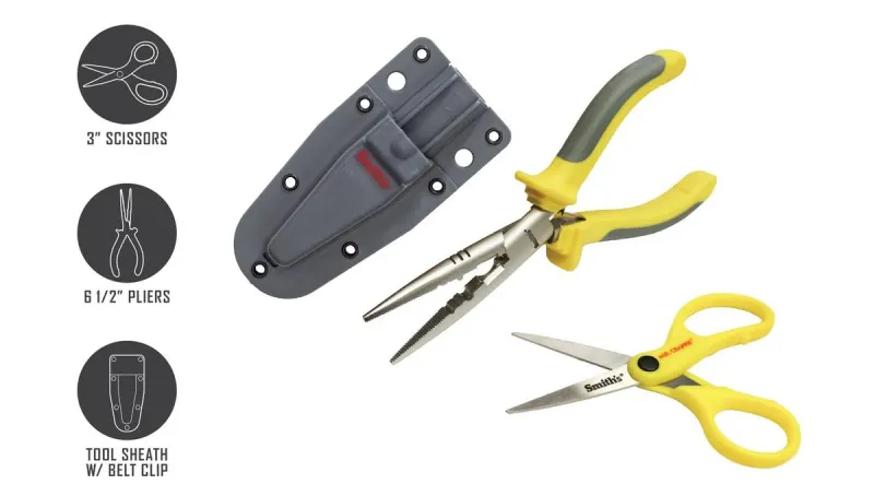 Smith’s Mr. Crappie 6.5″ Pliers and 3″ Scissor Combo make the perfect pair for any fisherman. The hard case will allow your tools to dry from each use and keeps the right by your side when you need them most. Remove the belt clip and mount directly to your boat rail or bait board.