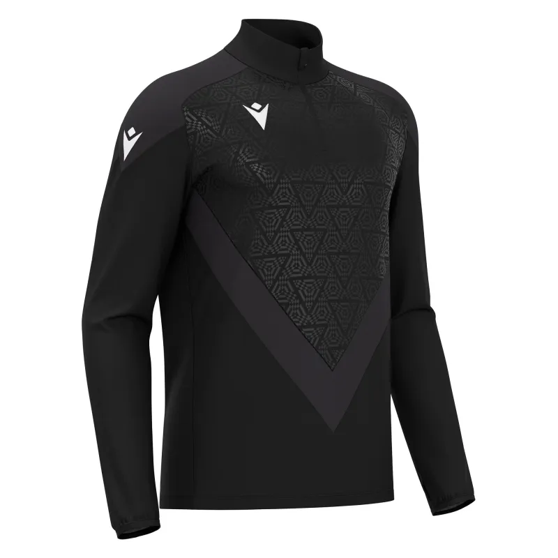 1/4 zip top designed in warm and comfortable Per-Fleece fabric. Characterized by a reversed nylon zip with an auto-lock for easy and secure opening. Features an embossed design on the chest and Lycra cuffs with thumbholes that ensure a secure and comfortable fit, allowing complete freedom of movement. Available in various colors.
