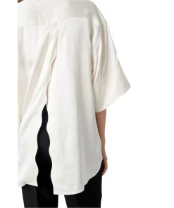 Add a modern flare to your look with the ladies Leena Short Sleeve Shirt from Soaked just for you. Designed in a lightweight, off white fabric. Crafted in a loose fit, with mid length dropped sleeves, and a cropped front with length at the back. Complete with a collar, front button closure and an open slit to the back.
