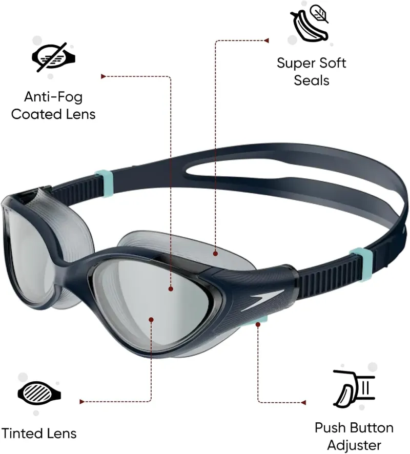 SPEEDO WOMENS BIOFUSE 2.0 SWIMMING GOGGLES NAVY/TEAL