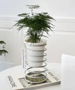 Elevate your greenery with our Spring Wire Planter Stand, a sleek fusion of sophistication and functionality. Crafted from durable stainless steel and available in a range of enchanting finishes including plated or lacquered, this stand seamlessly complements any space. Whether you prefer the timeless allure of silver, the crisp purity of white, the refreshing vitality of green, or the vibrant warmth of yellow, we have a hue to match your style. Perfect for showcasing your favorite botanicals indoors or out, its minimalist design adds a touch of modern elegance to your décor. Embrace the beauty of nature in a stand that’s as resilient as it is charming.