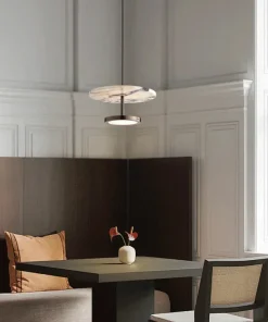 This high-end piece is perfect for spaces that demand sculptural elegance. Hang it solo as a statement bedside chandelier, creating an instant boutique hotel feel and freeing up nightstand space. Grouping several Stratum Pendants over a kitchen counter or a small dining table introduces a rhythmic, gallery-quality element. The combination of polished stone and matte metal ensures this lamp stands out as a sophisticated, architectural accent, defining your space with quiet confidence.