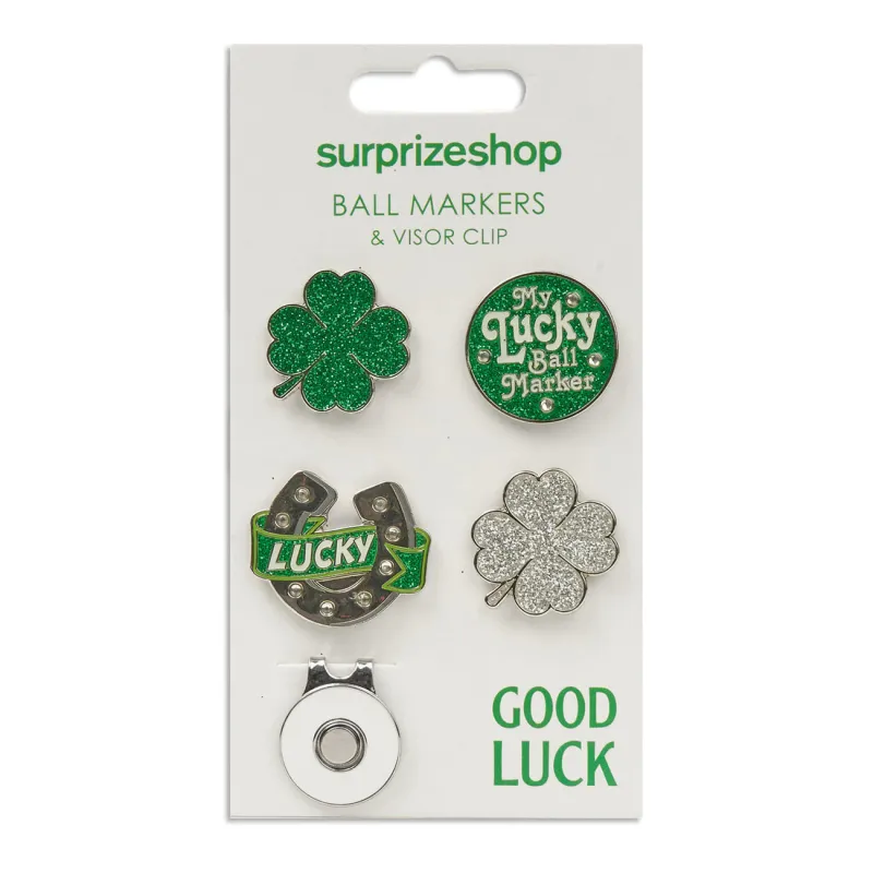 SURPRIZESHOP 4 BALL MARKER AND VISOR SET GOOD LUCK