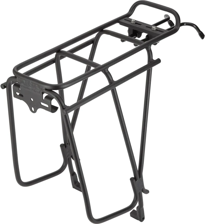The TRANSALP is specifically designed for bikes with disc brakes. Simple and super quick to mount to 26” and 700c bikes. Produced from lightweight 10mm alloy tubing and with additional lower pannier mounting rails means it’s easy to attach a rack pack without interfering with pannier hooks.