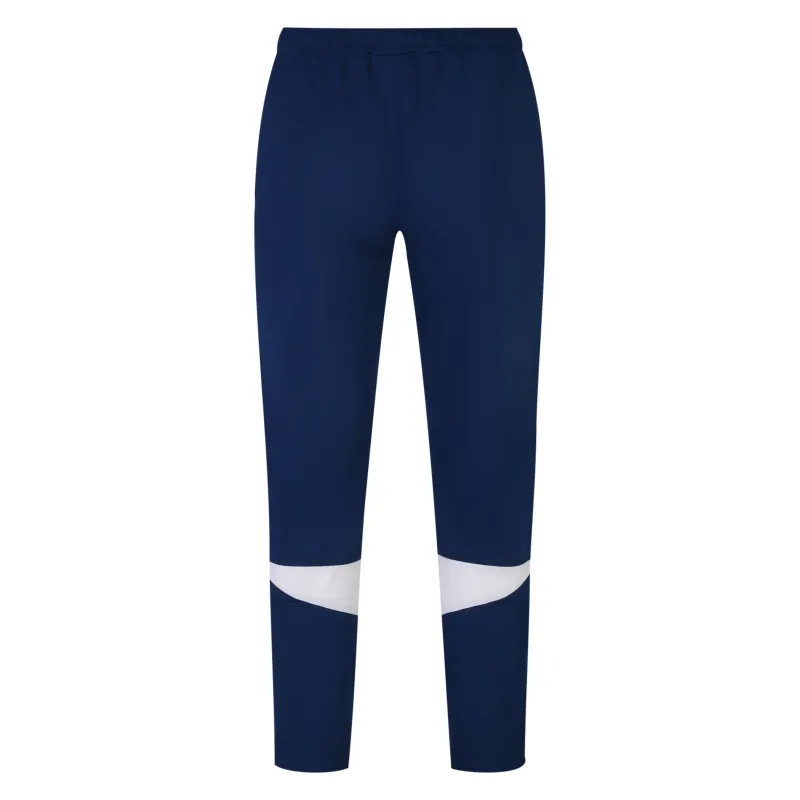 Get out on the field and show off your skills in the Total Training Knitted Pants. These training pants are styled with a tapered leg for a fuss-free, functional shape and finished with zip openings at the hems to allow you to easily take them off over your boots. Made from a 100 Polyester Pique, the adjustable waistband hides an internal drawcord to allow you to perfect the fit for a secure feel. Complete with contrast inserted panels to the back legs for a sport-style look and featuring the Umbro diamond logo on the upper leg.