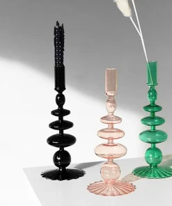 Blown glass candle holders in a beautiful array of colors and acrobatic shapes. Create a dynamic centerpiece by mix and matching styles or buy in pairs for a striking centerpiece.